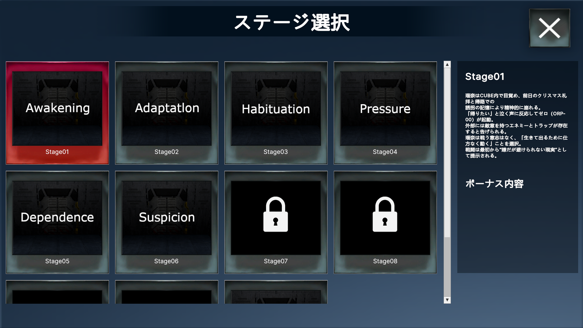 主人公・天音瑠奈は、外界から完全に遮断された金属構造の隔離空間で目覚め、施設内で遭遇したビット(AI武装ユニット)と共闘しながら脱出を目指します. 進行状況の把握が困難な均質化された空間での探索は心理的負荷を伴います。